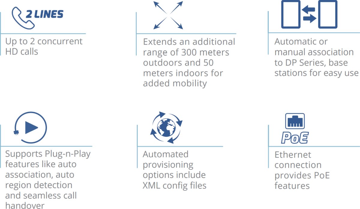 The DP760 is a powerful wideband DECT repeater (wireless relay station) that auto associates to Grandstream DECT base stations, offering extended mobility to business and residential users. The DP760 extends an additional range to give users the freedom to move around their home or work space. Up to 2 concurrent HD calls Extends an additional range of 300 meters outdoors and 50 meters indoors for added mobility Automatic or manual association to DP Series base stations for easy use Supports Plug-n-Play features like auto association, auto region detection and seamless call handover Automated provisioning options include XML config files Ethernet connection provides PoE features Package Content Repeater Unit, Universal Power Supply; Ethernet cable; Quick Start Guide, GPL statementDownload