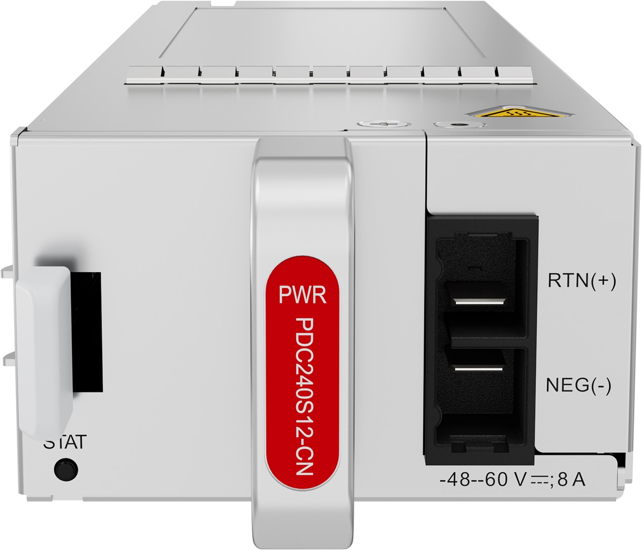 Huawei PDC240S12-CN is a power supply for the Huawei S620-24T16X8Y2CZ switch with an input power voltage of +48V/-48V/-60V DC, featuring hot swap capability. Output power is 240W.