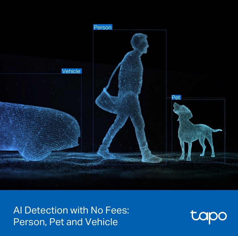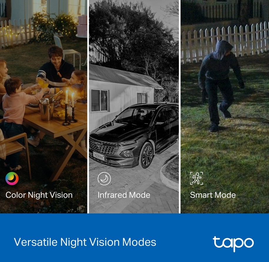Tapo C545D is an outdoor security Wi-Fi camera with a dual-lens system. It offers a maximum resolution of 2K 3MP (2304 × 1296 px) + 2K 3MP (2304 × 1296 px) at a frame rate of 15 FPS. Thanks to its dual-lens design, the camera provides a wide viewing angle. At night or in low-light conditions, it uses an IR-cut filter with automatic switching and infrared illumination with a range of up to 29.9 m, ensuring sharp and detailed nighttime recordings. The camera can detect the movement of people, vehicles, and pets, as well as recognize when a designated area has been crossed. With an IP66 weatherproof rating, it remains fully functional even in harsh weather conditions.