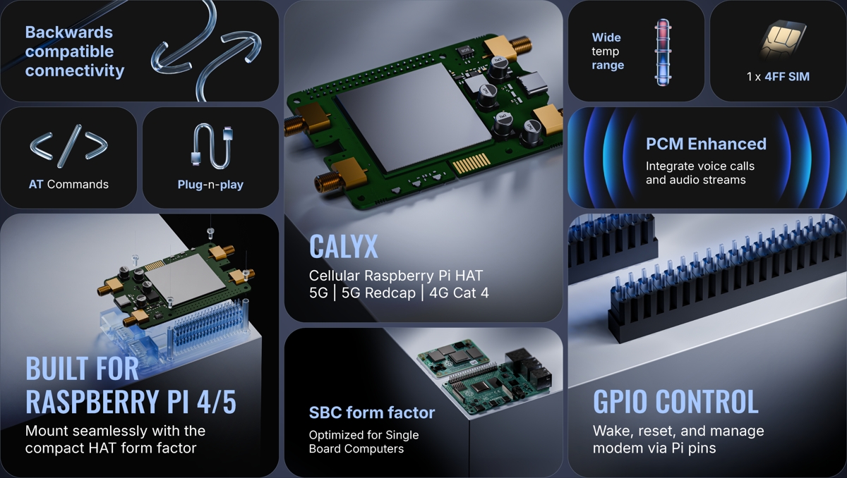 Teltonika EBD021, CALYX 4G LTE modem HAT+ for Raspberry Pi 4 and 5