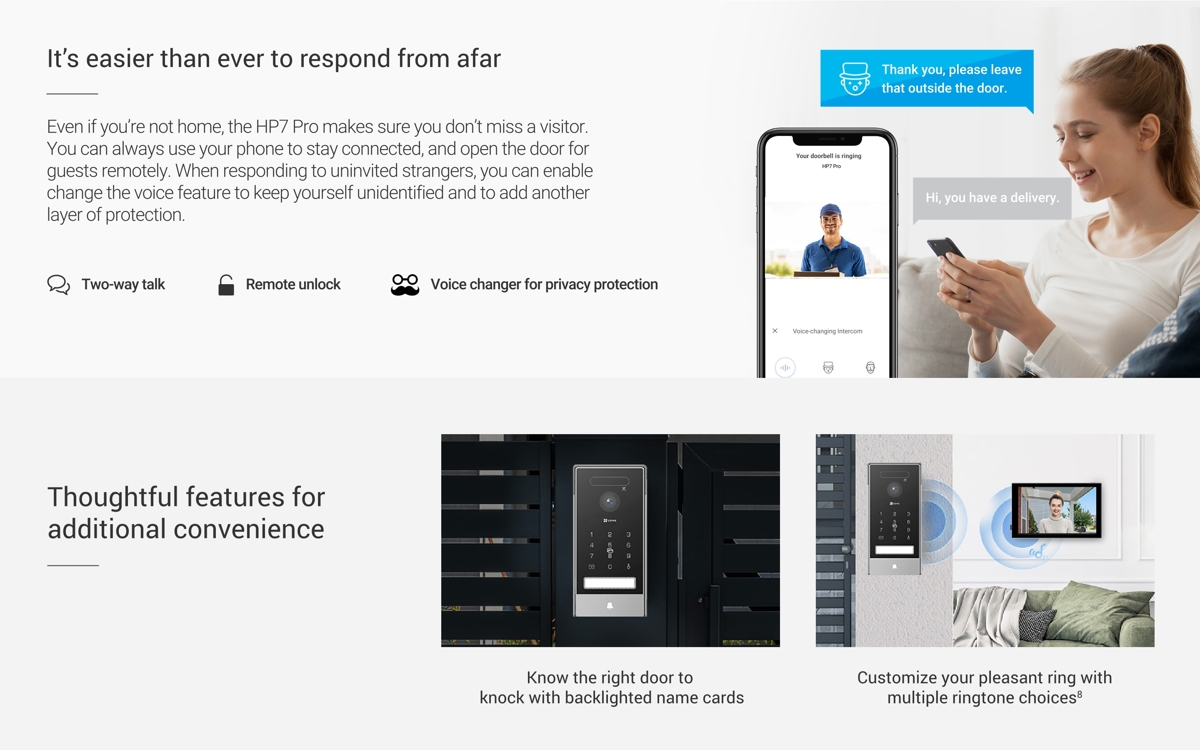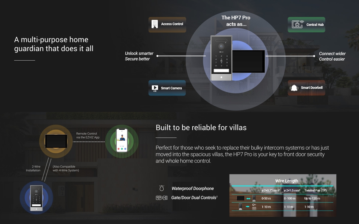 The Ezviz HP7 Pro is a 4K video intercom kit suitable for homes and small businesses. With the EZVIZ app, you can communicate with the door station and receive video calls anytime, anywhere.