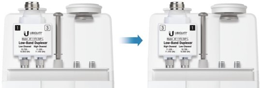 За да промените честотата на Tx и Rx в режим SISO, е необходимо да завъртите дуплексера. Пълната връзка ще има едни и същи дуплексери от двете страни (ниско-ниско или високо-високо) и дори в режим MIMO. Изборът на ниски или високи дуплексери зависи от това какви честоти ще бъдат разпределени от местния телекомуникационен орган.
