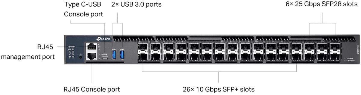 - 26× 10G SFP+ слота и 6× 25G SFP28 слота