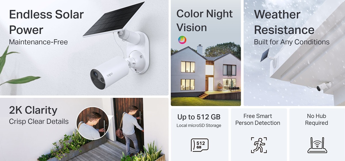 - Гъвкави опции за съхранение: Изберете между локално microSD съхранение до 512 GB или сигурни облачни услуги Tapo Care за допълнително спокойствие.