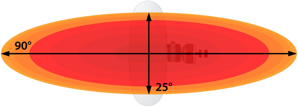Асиметричната антена AH90-WB не излъчва странични лобове, фокусирайки енергията в един основен лъч. Това е една от най-важните характеристики на безжичните мрежи. Благодарение на тези уникални характеристики на излъчване, антената улавя значително по-малко шум в сравнение със съществуващите антени за масовия сектор. Проблемите с шума са пряко свързани със страничните лобове на антената – неизбежен аспект при повечето конкурентни продукти. AH90-WB се държи различно, като е практически „глуха“ извън основния лъч.