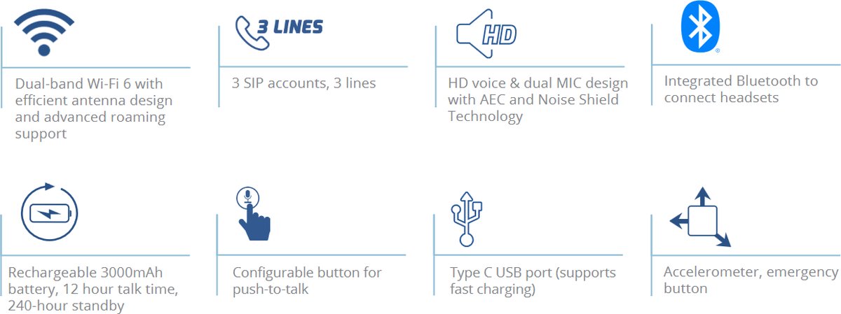 Grandstream WP826 SIP WiFi phone, 3x SIP account, Bluetooth and USB C