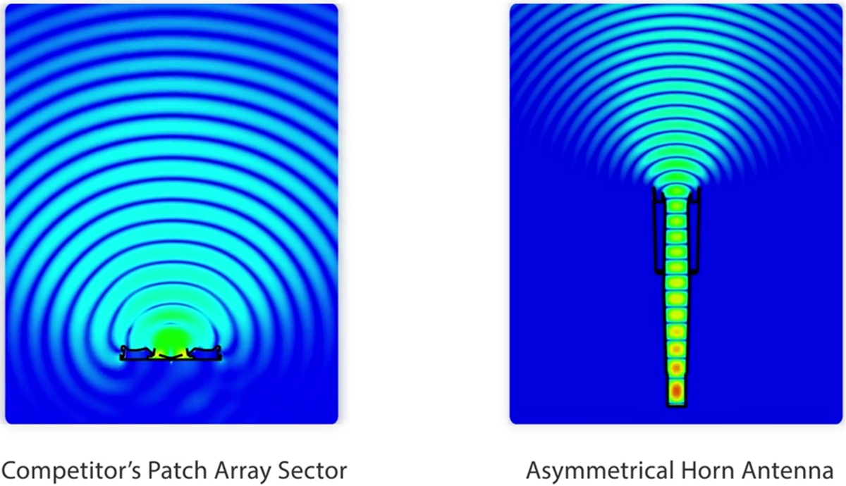 Традиционните секторни антени имат специфичен модел на покритие – ако точката за достъп (AP) е твърде високо, близките клиенти страдат от лошо качество на сигнала. Както се казва, „под свещника е най-тъмно“. Асиметричните секторни антени излъчват сигнали с кръгово сплескана форма на лъча. В резултат на това покритието на асиметричните секторни антени е почти без мъртви зони, което удовлетворява клиентите, разположени близо до AP.