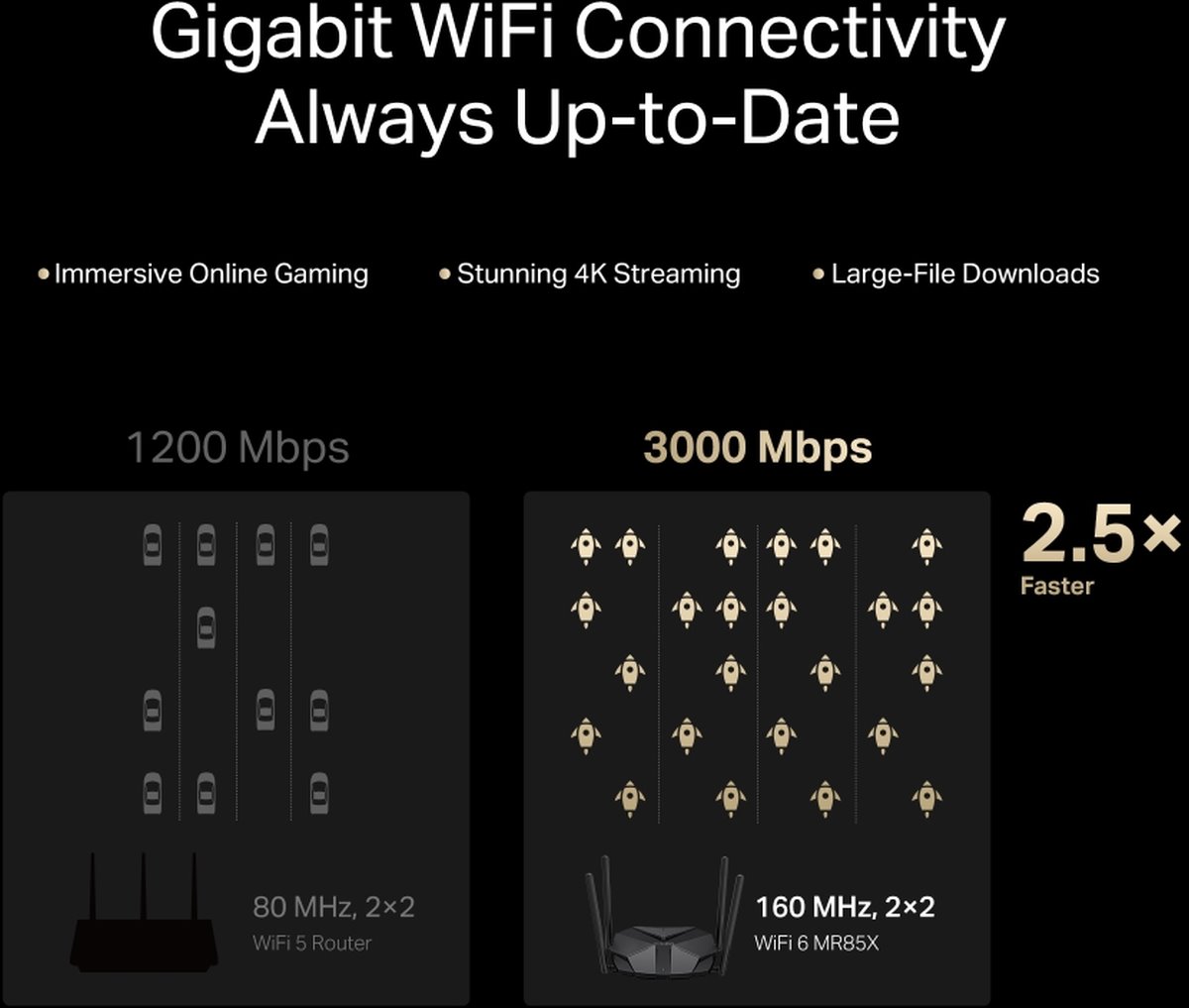 - Wi-Fi 6 скорости – Оптимални Wi-Fi 6 скорости, достигащи до 3 Gbps за по-бързо сърфиране, стрийминг и изтегляне, всичко едновременно