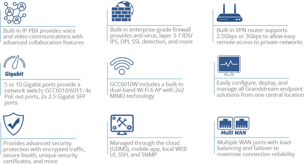 Grandstream GCC6010 all-in-one solution (VPN router, Firewall, PoE switch and IP PBX)