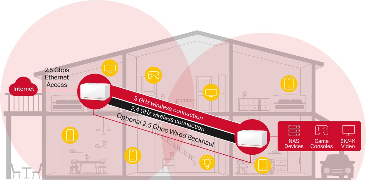 - Многогигабитово покритие за целия дом: Halo mesh устройствата работят като обединена мрежа, за да запълнят дома ви до 460 м² (2 броя).