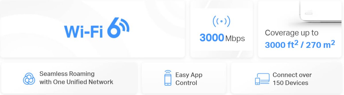 В пакета ще намерите 1 единица С двубандов WiFi AX3000 ( 574 + 2402 Mbps ) MU-MIMO с вградени антени и три 10/100/1000 Mbps Ethernet порта. Устройството поддържа Beamforming , ще покриете площ до 270 м2 . Ако е необходимо да разширите покритието си, просто закупете допълнителни устройства. Halo устройствата поддържат IPv6 . Отделна мрежа за гости или родителски контрол също е подходящо допълнение към модерния дом.