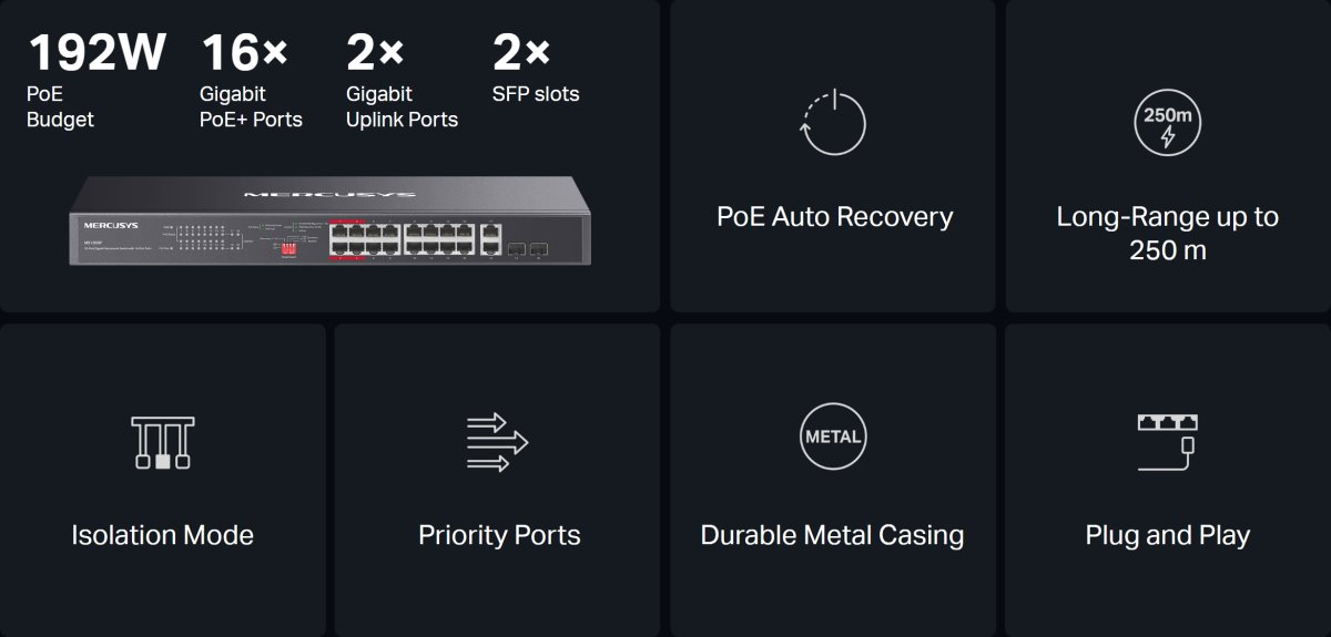 MERCUSYS MS120GP 20port Gigabit rackmount switch with 16 ports PoE+