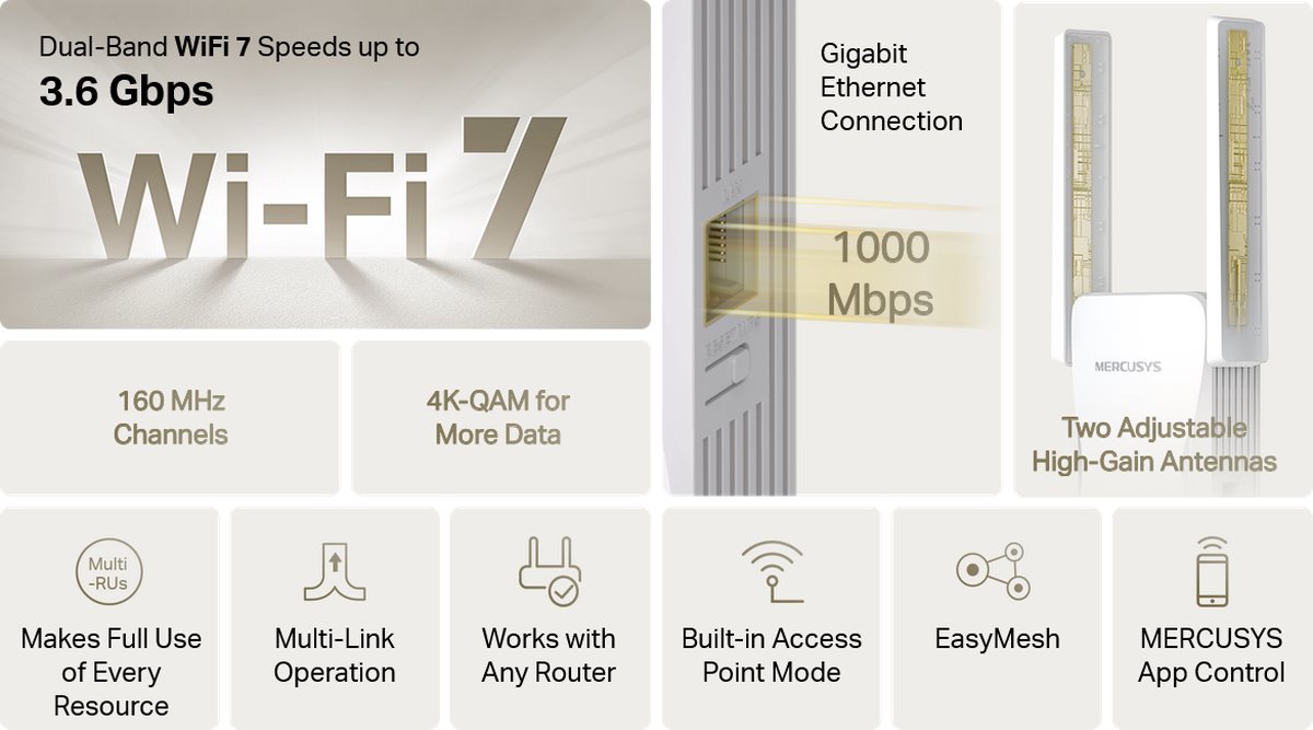 MERCUSYS ME25BE BE3600 Wi-Fi 7 Range Extender