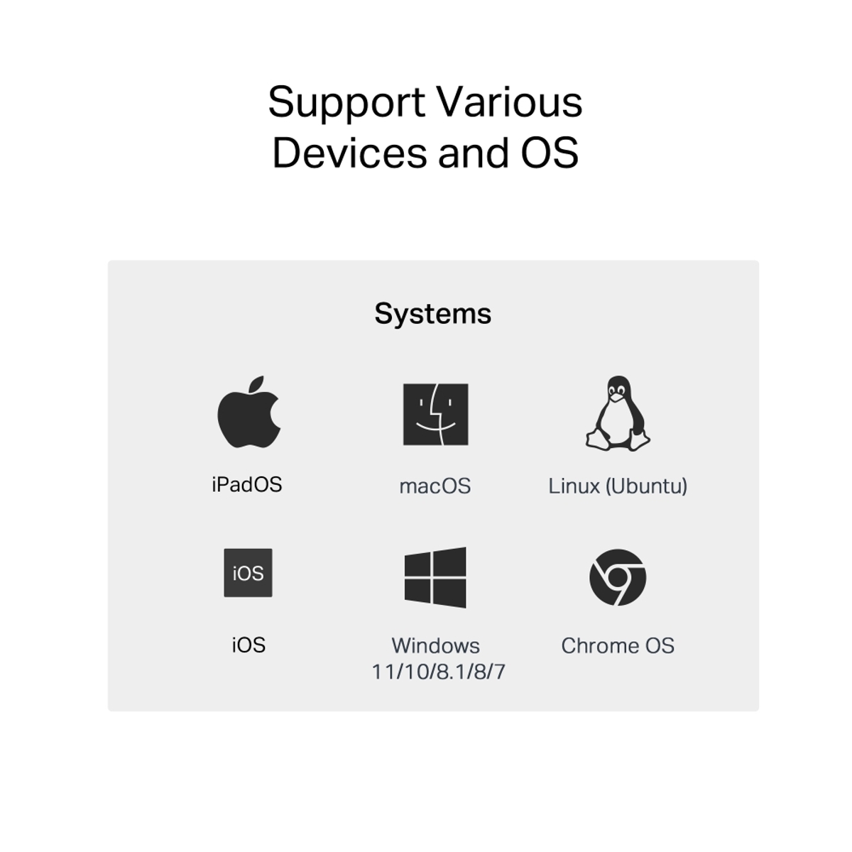 - Съвместим с Windows 11/10/8.1/8/7, macOS, iPadOS, Chrome OS, Linux и iOS