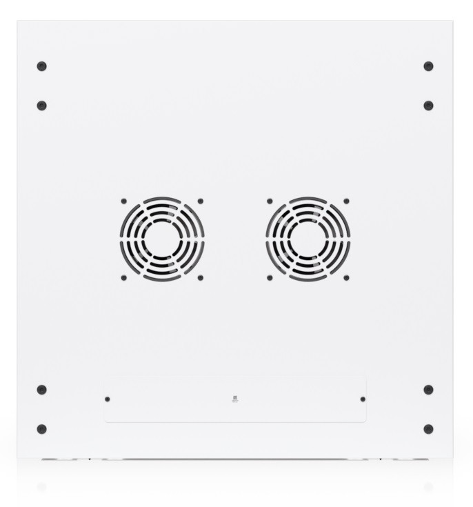 За да се осигури ефективно охлаждане на активните елементи, шкафът е оборудван с чифт вентилатори, общото ниво на шум е под 50dB(A). Ако е необходимо да се резервират активните елементи, например с батерии, със сигурност ще бъдете доволни от надстандартната товароносимост от 80 кг. Конструкцията е проектирана в елегантен бял цвят с прахово боядисана повърхност, като логото на Ubiquiti не липсва отстрани. Кабелни входове с тапи са подготвени отдолу, отгоре и отзад на шкафа.