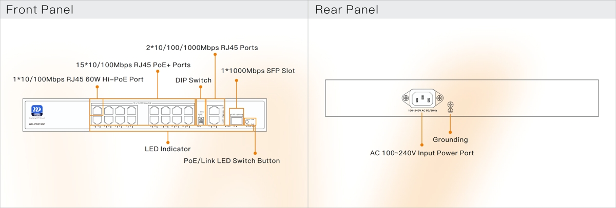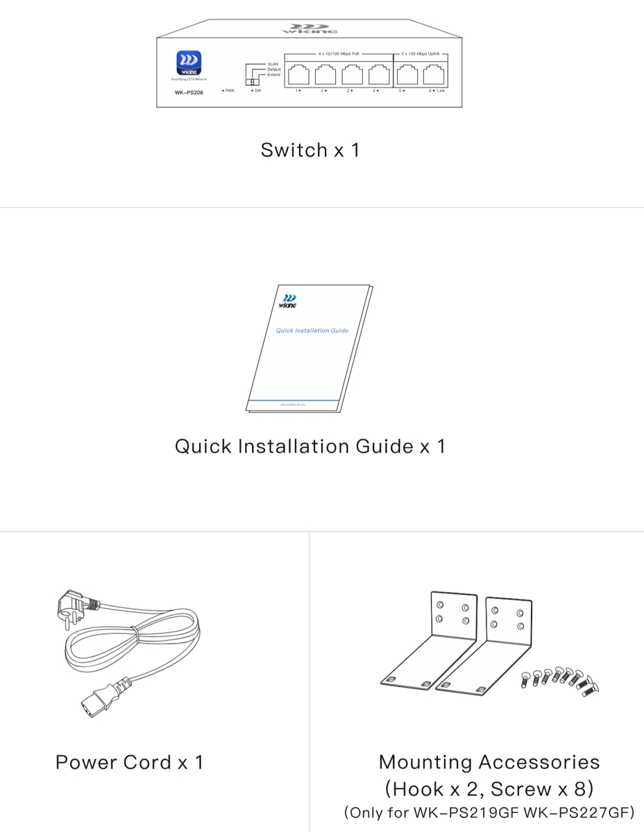 Това е автоматичен превод. Оригиналния текст може да видите тукWiking WK-PS219GF е надежден неуправляем PoE L2 комутатор с комутационен капацитет от 9.2Gbps , (16) 10/100Mbps PoE порта , (2) 1Gbit uplink порта и (1) SFP uplink слот . Downlink портовете поддържат PoE с бюджет от 180W . Комутаторът е идеален за CCTV инсталации благодарение на PoE, автоматично рестартиране на IP камерата в случай на прекъсване на връзката и опцията за удължаване на разстоянието на предаване на PoE портовете до 250m . Комутаторът консумира 10W (без товар).