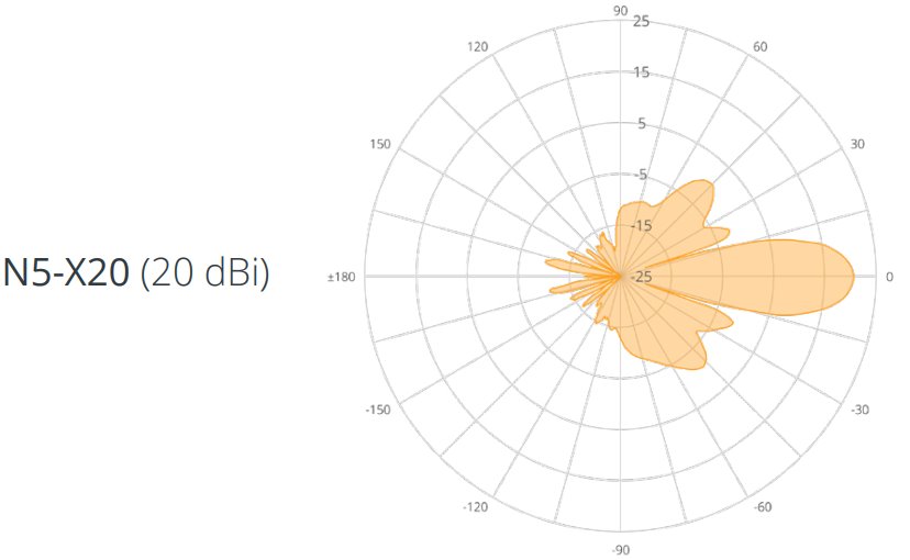 N5-X20 is parabolic directional antenna with gain 20dBi and beamwidth angle 12° for use with C5x units. C5x is connected with antenna by Twist-on connector which eliminates loss on VF cables and connectors.