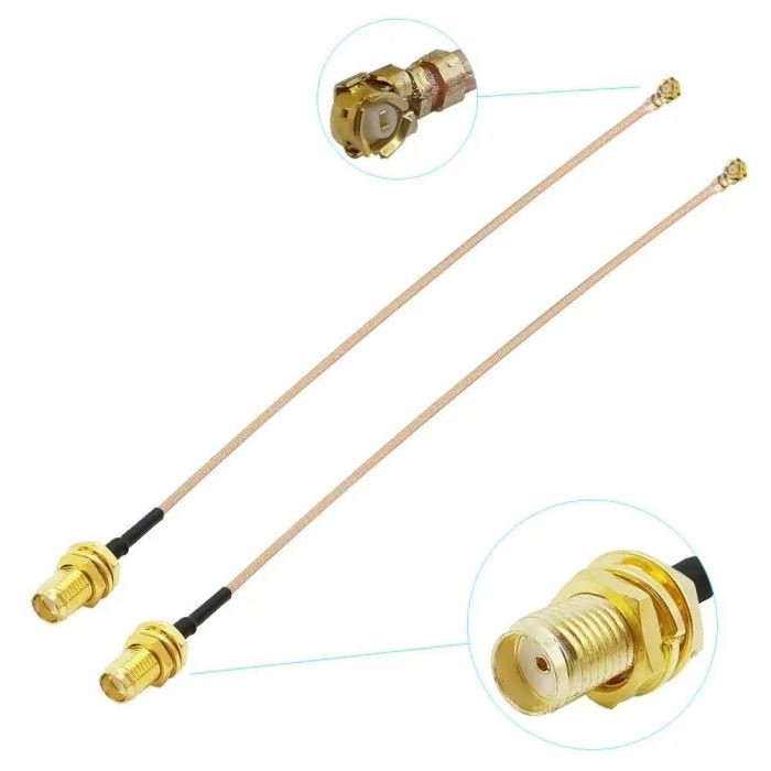 Pigtail with u.Fl and SMA female connectors, typically used to connect a 3G/LTE antenna to a miniPCI(e) card. The pigtail is 20 cm long.