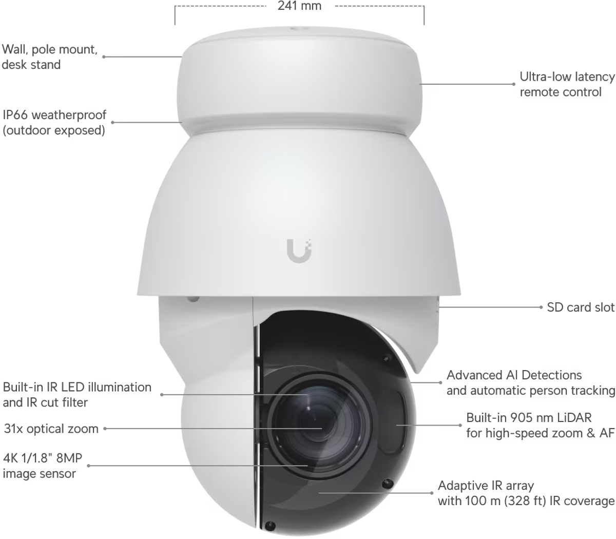Ubiquiti AI PTZ Precision - 8MP PTZ IP Camera, White