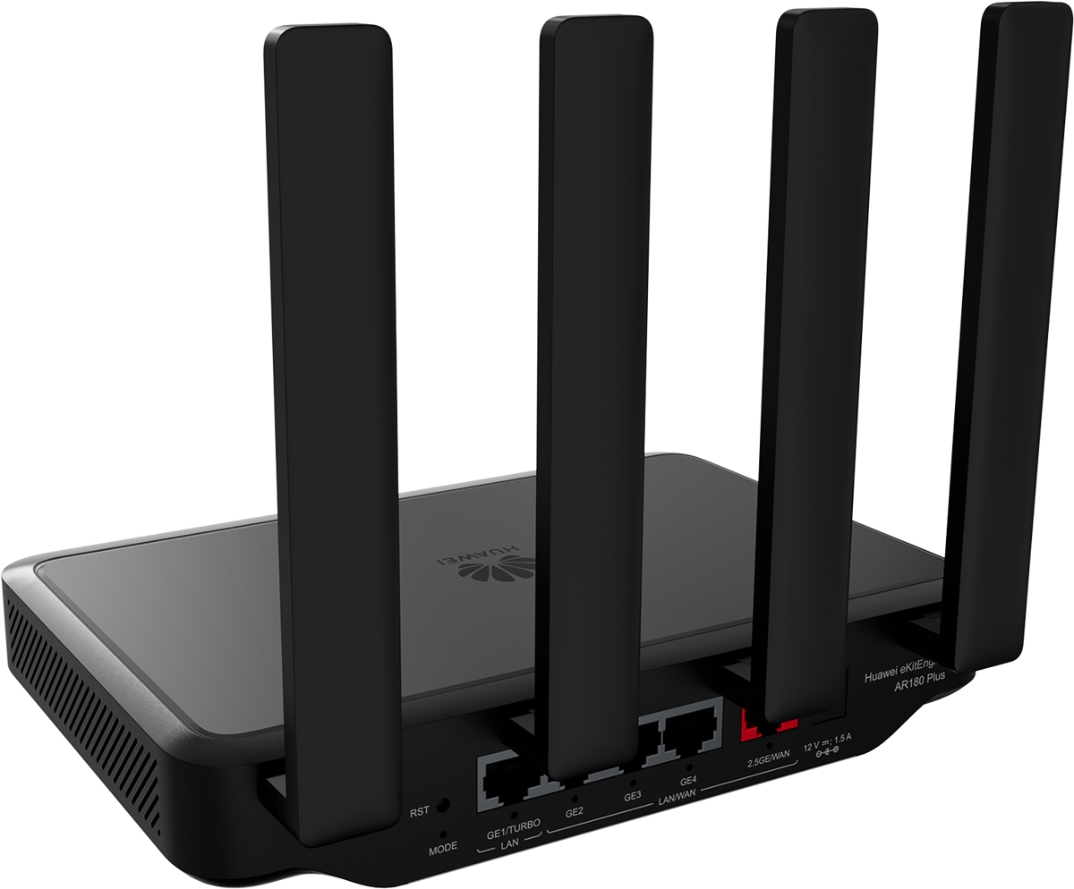 Huawei AR180 is a high-performance dual-band Wi-Fi 7 router, operating simultaneously on two bands (2.4GHz and 5GHz) to achieve a maximum data transfer rate of up to 3.57Gbps. The router is equipped with (1) 2.5G port, (4) Gbit ports and supports management via a local web interface as well as cloud management (eKit SNC / eKit mobile app). It features modern technologies such as MU-MIMO, 4096-QAM and MLO. The device's maximum power consumption is 13W.