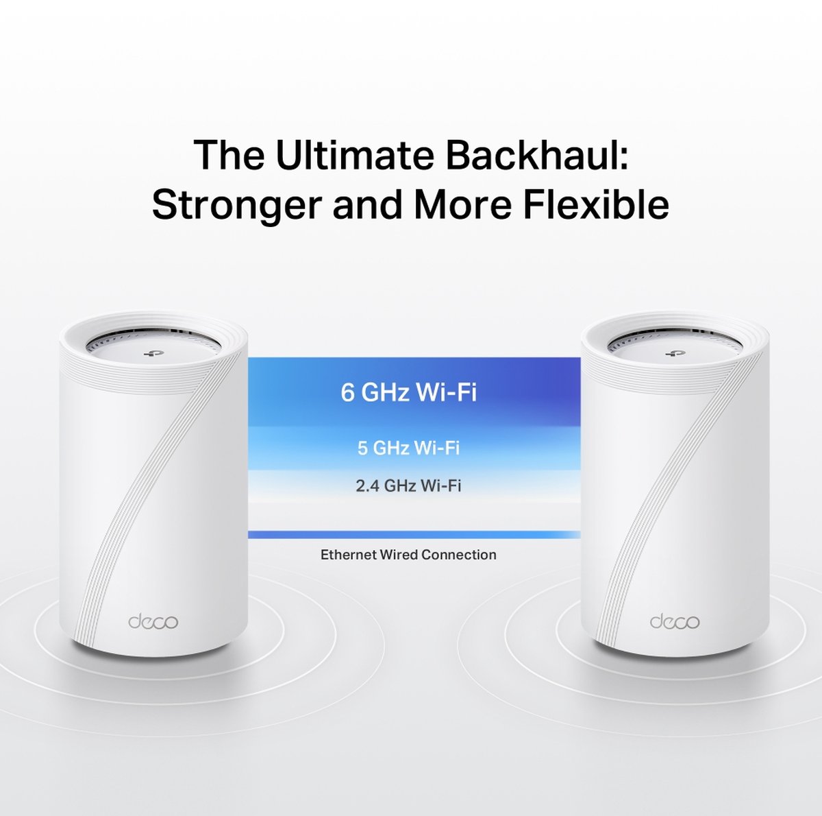 TP-Link Deco BE68 (2-pack) is the easiest way to ensure a strong Wi-Fi signal in every corner of your home. Wireless connectivity and the option to connect all units either via cable or wirelessly provide even higher network speeds and truly seamless coverage. Want more coverage? Just add another Deco unit.