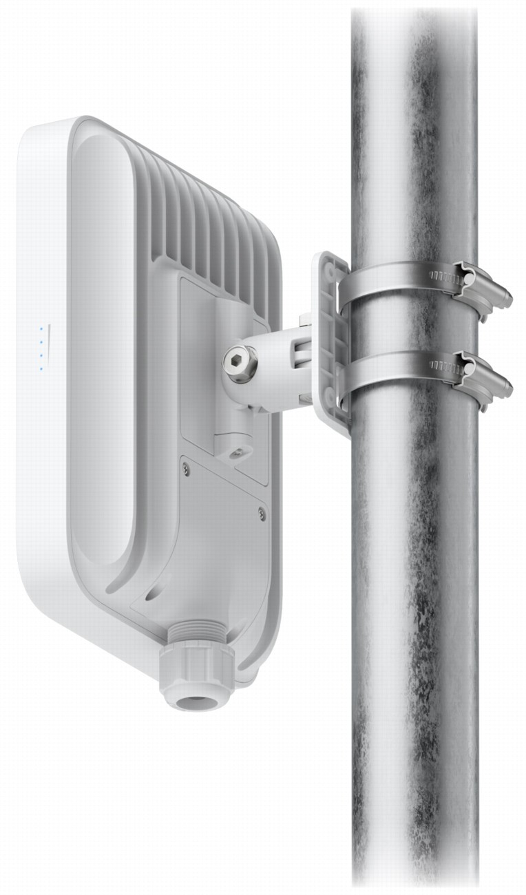 It has enhanced weatherproofing, featuring a rugged, weather-resistant enclosure rated at IPX6 for protection against harsh conditions. For greater protection against the elements, upgrade to an IP67 rating using the included cable-gland door kit. In addition, the UniFi 5G Max Outdoor features a built-in high-gain directional antenna. It delivers stronger, more consistent performance in outdoor environments by improving signal reception and extending coverage.