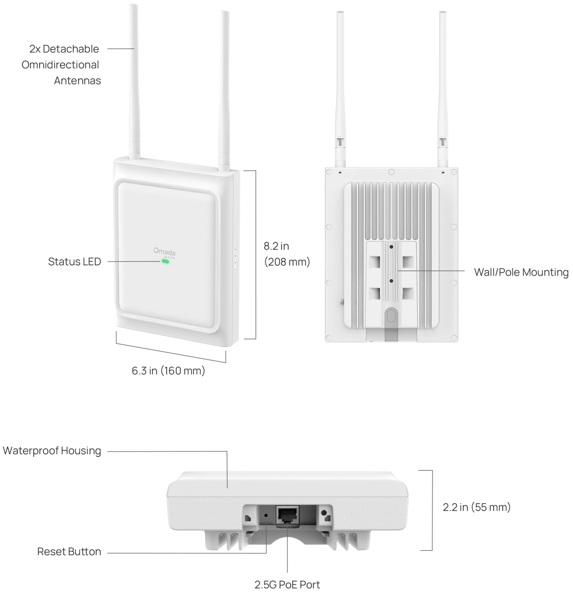 - Detachable omnidirectional antennas - freely switch between internal directional and omnidirectional antennas via software for optimal signal control