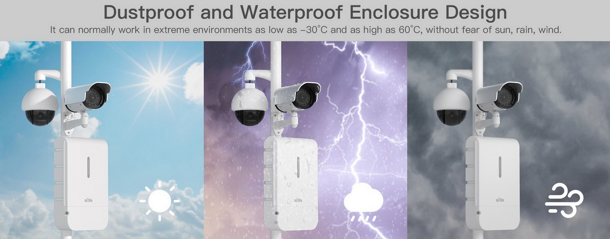 • Outdoor design: IP65 rating and an operating temperature range from -30 °C to 60 °C.