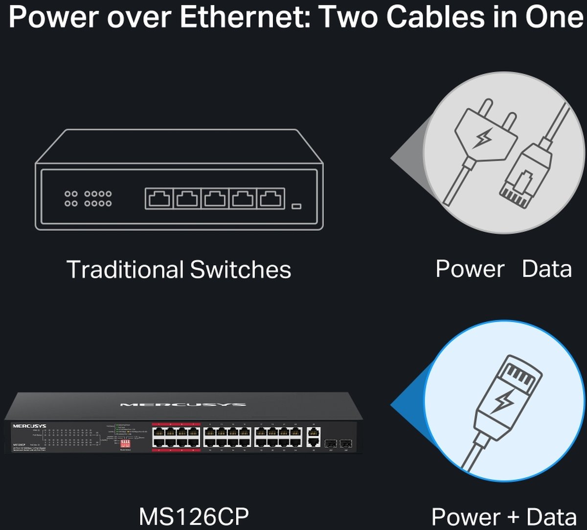 MERCUSYS MS126CP, PoE+ switch, 24x POE 10/100M, 2x 1G Combo uplink