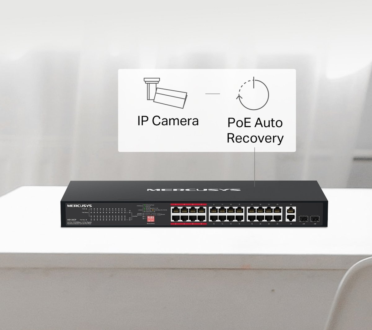 - PoE Auto Recovery guarantees stable operation of PoE devices by automatically rebooting the dropped or unresponsive PD devices