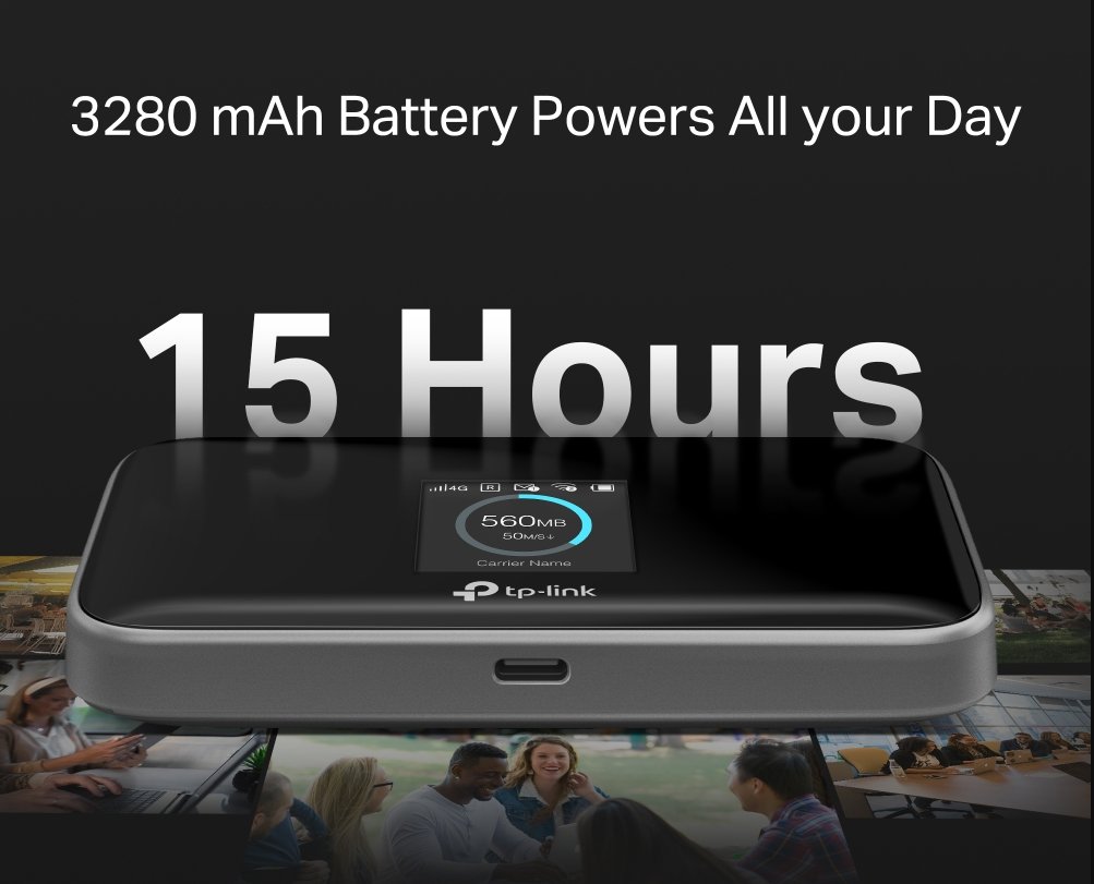 M7450 is a pocket 4G LTE router from TP-Link, it has an integrated Dual Band WiFi - 300Mbps in the 2.4GHz band and 866Mbps in 5GHz, a built-in battery with a capacity of 3000mAh with a lifespan of up to 15 hours, an SD slot for cards up to 32GB and wide support for LTE channels.