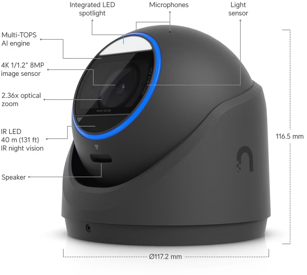 Ubiquiti G6 Pro Turret, UniFi 8MP IP camera, black